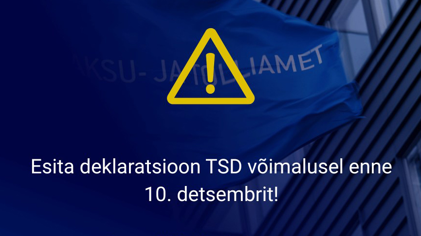 Sellest tulenevalt soovitab maksuamet ka deklaratsiooni TSD esitada võimalusel enne 10. detsembrit, et vältida koormuse suurenemisest tulenevaid viivitusi.