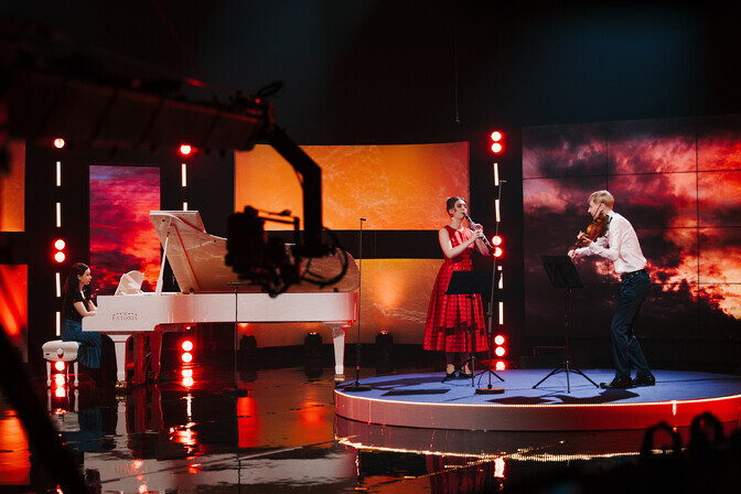 Klassikatäht Isabella Runge musisteerimas koos viiuldaja Hans Christian Aaviku ja pianist Karolina Aavikuga Autor/allikas: Ken Mürk/ERR