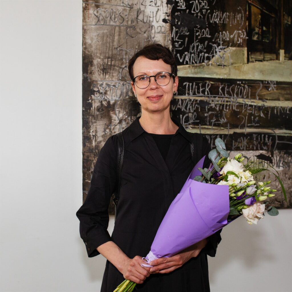 Anu Allas 19. juunil Tallinna Kirjanike Majas Eesti Kirjanike Liidu 2025. aasta romaanivõistluse tulemuste väljakuulutamisel.