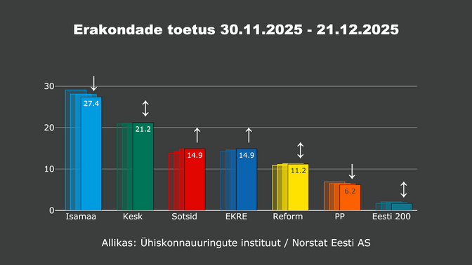 Aasta lõpus on mõnevõrra toetust kaotanud Isamaa ja kasvatanud Sotsiaaldemokraatlik Erakond (SDE), teatas uuringufirma Norstat Eesti AS, mis korraldab koostöös MTÜ-ga Ühiskonnauuringute Instituut iga nädal parteide populaarsusküsitlust.