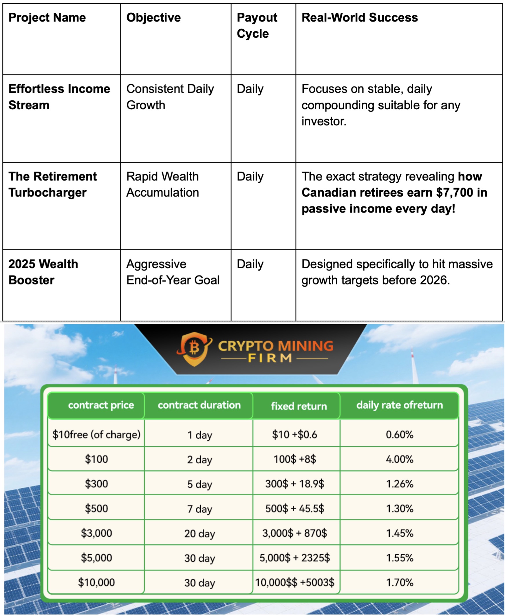 Meie investeerimisprojektid on üles ehitatud igapäevase passiivse sissetuleku põhiprintsiibile, näidates teile, mis on tõeliselt võimalik: