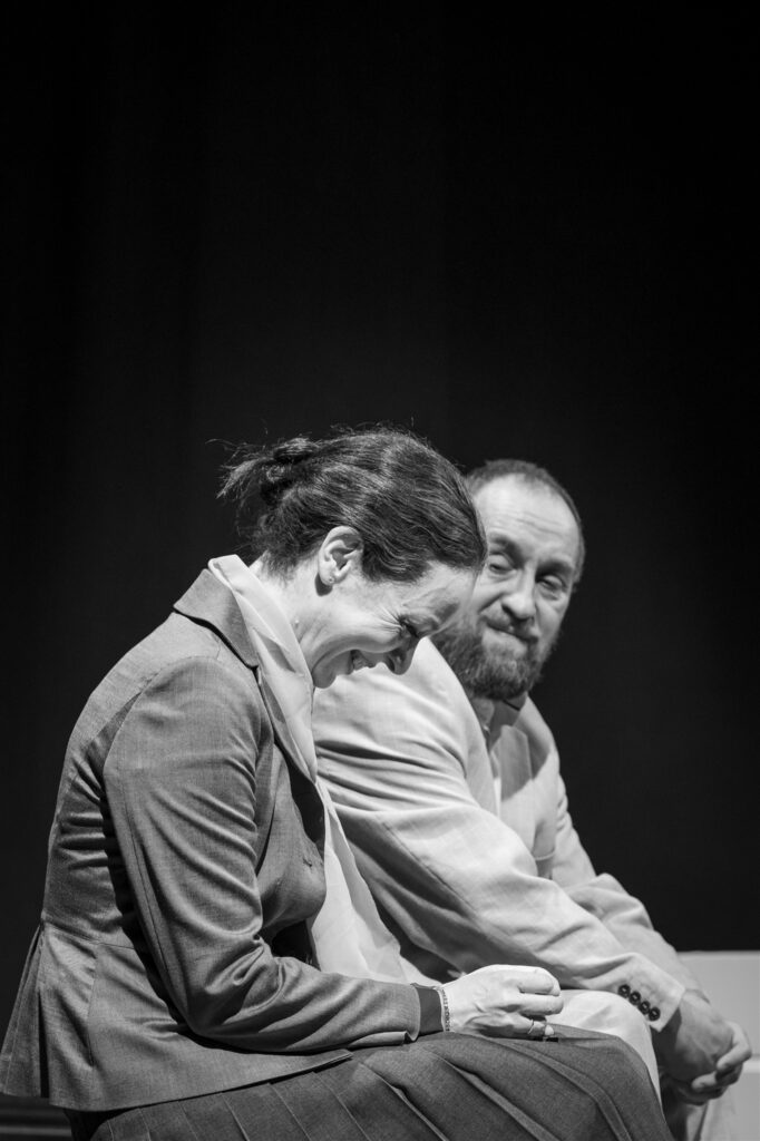 Theatrumi „Näitemäng“, autor Jon Fosse, tõlkija Sigrid Tooming, lavastaja Lembit Peterson, kunstnik Kalju-Karl Kivi, helikujundaja Helena Tulve, valguskujundaja Léon Augustin Allik. Laval Anneli Tuulik, Helvin Kaljula, Marius Peterson, Maria Teresa Kalmet, Jonathan Peterson, Tarmo Song ja Maria Peterson. Esietendus 2. XII 2025 Theatrumi saalis.