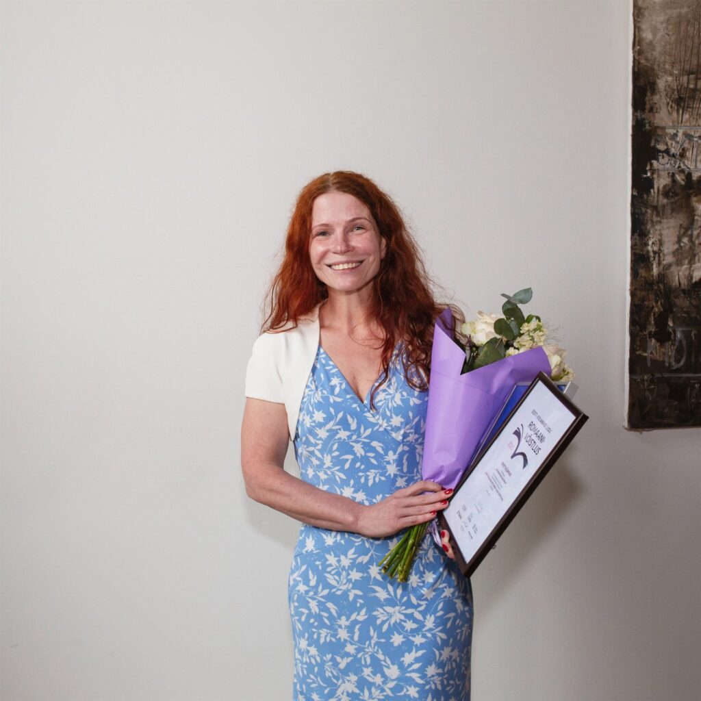 Kristi Küppar 19. juunil Tallinna Kirjanike Majas kirjanike liidu 2025. aasta romaanivõistluse tulemuste väljakuulutamisel.