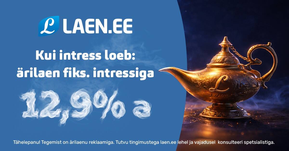 Tähelepanu! Tegemist on ärilaenu reklaamiga. Tutvu tingimustega laen.ee lehel ja vajadusel konsulteeri spetsialistiga.