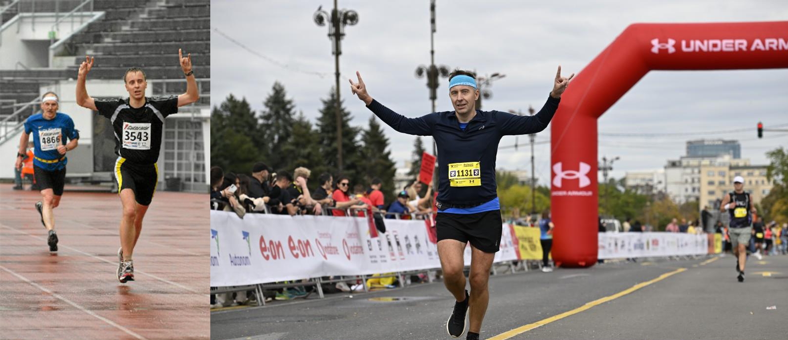 Vasakul foto Raido Puusti teisest läbitud maratonist (Helsingi, 2008) ning paremal hetkel viimati joostud maraton (Bukarest, 2025).Foto: Erakogu