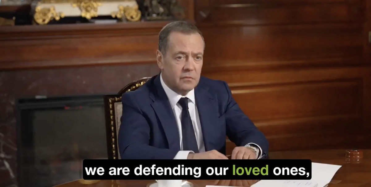 Ukraina erioperatsiooni võidu eesmärk on ära hoida uusi konflikte, sõnas Medvedjev. Tema sõnul on sellel järjepidevus Suure Isamaasõja ajaga ja see seisneb seisneb oma riigi ja lähedaste kaitsmises.