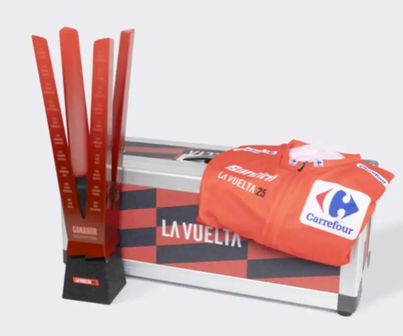 El diseño del trofeo que se entrega al ganador de La Roja rinde homenaje a la rica historia de la carrera, presentando la icónica V de Victoria del logotipo de La Vuelta, así como el grabado de todos los ganadores de la carrera desde la primera edición en 1935. Por lo tanto, el campeón recibirá un prestigioso objeto de colección. Los trofeos del segundo y tercer puesto presentan un diseño audaz, con una geometría irregular y oblicua que refleja la esencia misma del ciclismo: un deporte de movimiento constante, superación personal y giros inesperados. Estos son tres elementos del menú para las tres semanas de competición que le esperan al pelotón, a partir de mañana.