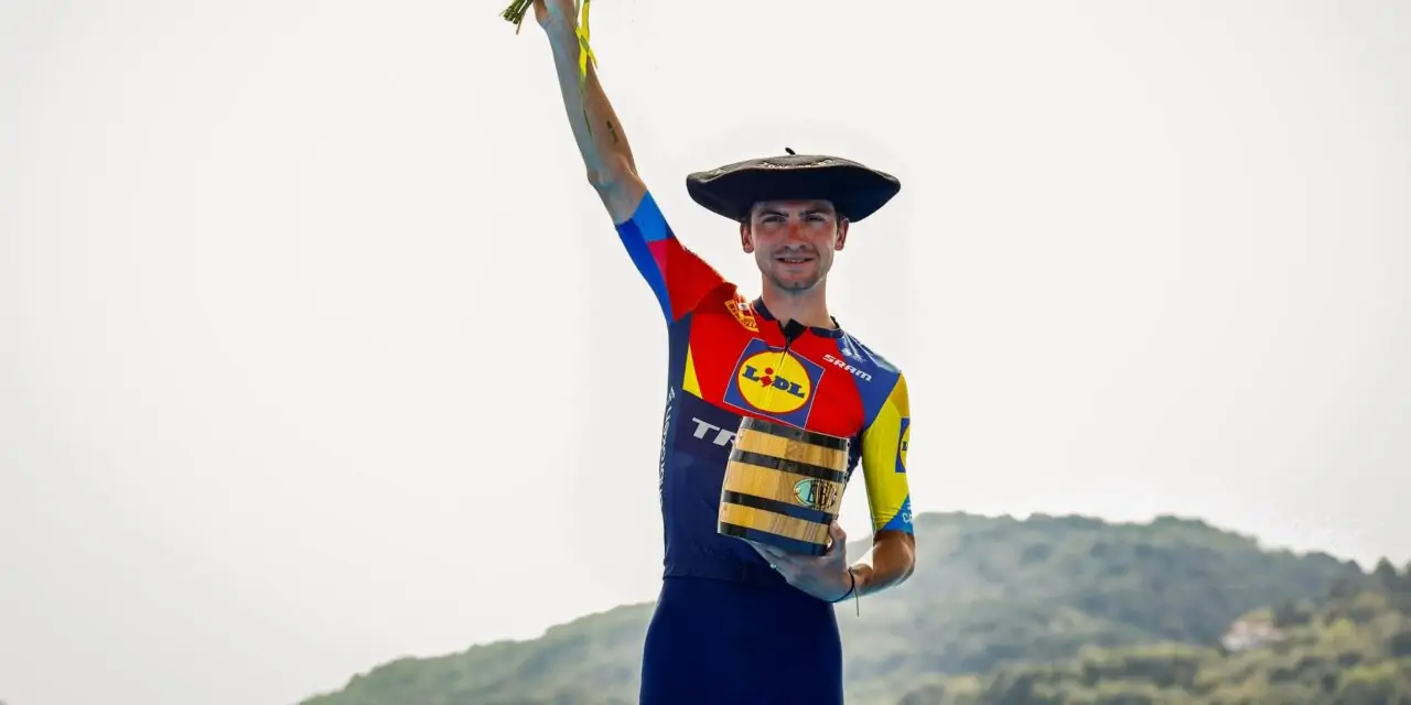 Giulio Ciccone en lo más alto del podio de la Clásica de San Sebastián (c) Cor Vos