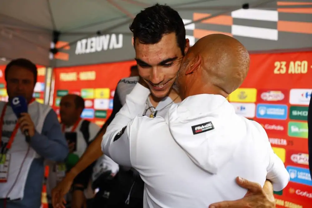 Ayuso y Matxín en al finalizar la 7ª etapa de La Vuelta (c) Unipublic – Rafa Gómez