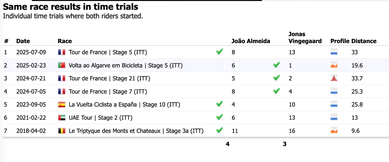 Duelos en la contrarreloj entre Almeida y Vingegaard (c) Pro Cycling Stats