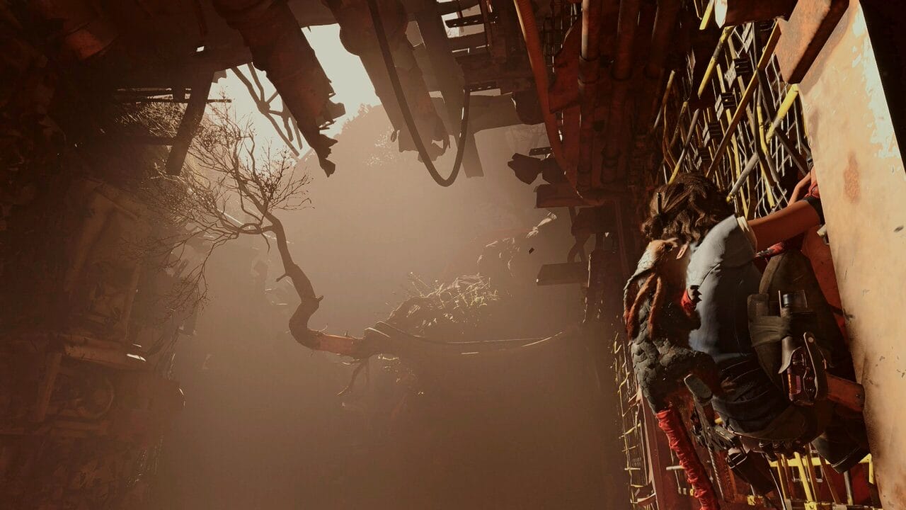 Manejar a Kay es muy complaciente (mi palabra favorita para este análisis). Es una chica ágil, diestra con las armas y con comodines aquí y allá. Y pese a esto, y tener grandes zonas que explorar, casi siempre están muy limitadas y solo puedes ir por ciertos caminos. Es decir, es una excelente escaladora, pero busca el tipo de paredes concretas que te permiten escalar, o las marcas amarillas y negras que suelen indicar el camino por el que tienes que trepar, puestas en tubos, por ejemplo. Muchas mecánicas de escalada se repiten constantemente en el juego, y a veces cuesta un poco saber «qué es lo que quiere el juego que hagas ahí». Es muy diferente The Legend of Zelda: Breath of the Wild o Tears of the Kingdom; en una misión, los caminos son los que son, y pocas veces hay opción de ir por uno alternativo, o bien te topas con callejones sin salida. Siempre hay algo que robar, eso sí.