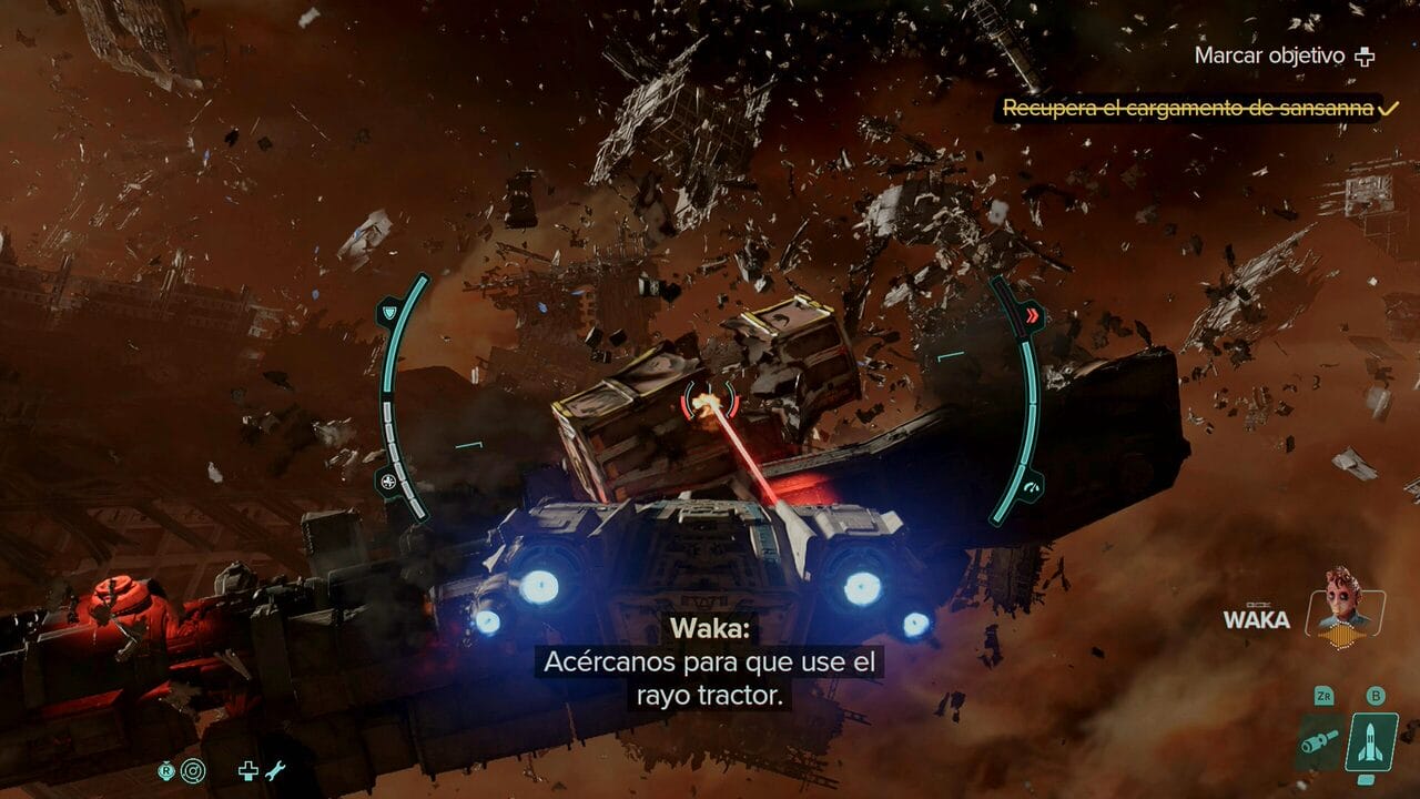 Tras hacerte con los controles, y haber disputado algunas batallas espaciales, he de decir que mi parte menos favorita del juego ha sido esta. No es que la puesta en escena carezca de espectacularidad, sino que me han parecido secciones que he querido superar lo más rápido posible. Hay que decir que en el espacio también hay secretos que encontrar, por lo que, aunque no te entusiasme, lo que puedes llegar a descubrir te anima a pilotar la Cazaestelas.