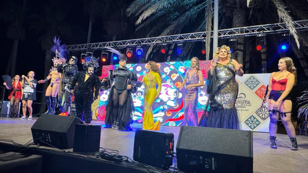 Sobre el escenario brillaron artistas como Grimasira Maeva, Drag Chuchi, Exuberancia Carey, Vanesa Artiles, Aythami Legendary, y Drag Armek, ganador de la Gala Drag del Carnaval de Las Palmas de Gran Canaria 2025. El cierre de la gala estuvo a cargo de la aclamada Lady Blue. También participaron la comparsa Son Bahía y el grupo coreográfico Essavan, aportando ritmo y autenticidad a una festiva e inclusiva noche portuense.