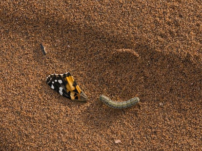 El ala de una mariposa junto a una oruga, en MarruecosLucas Foglia