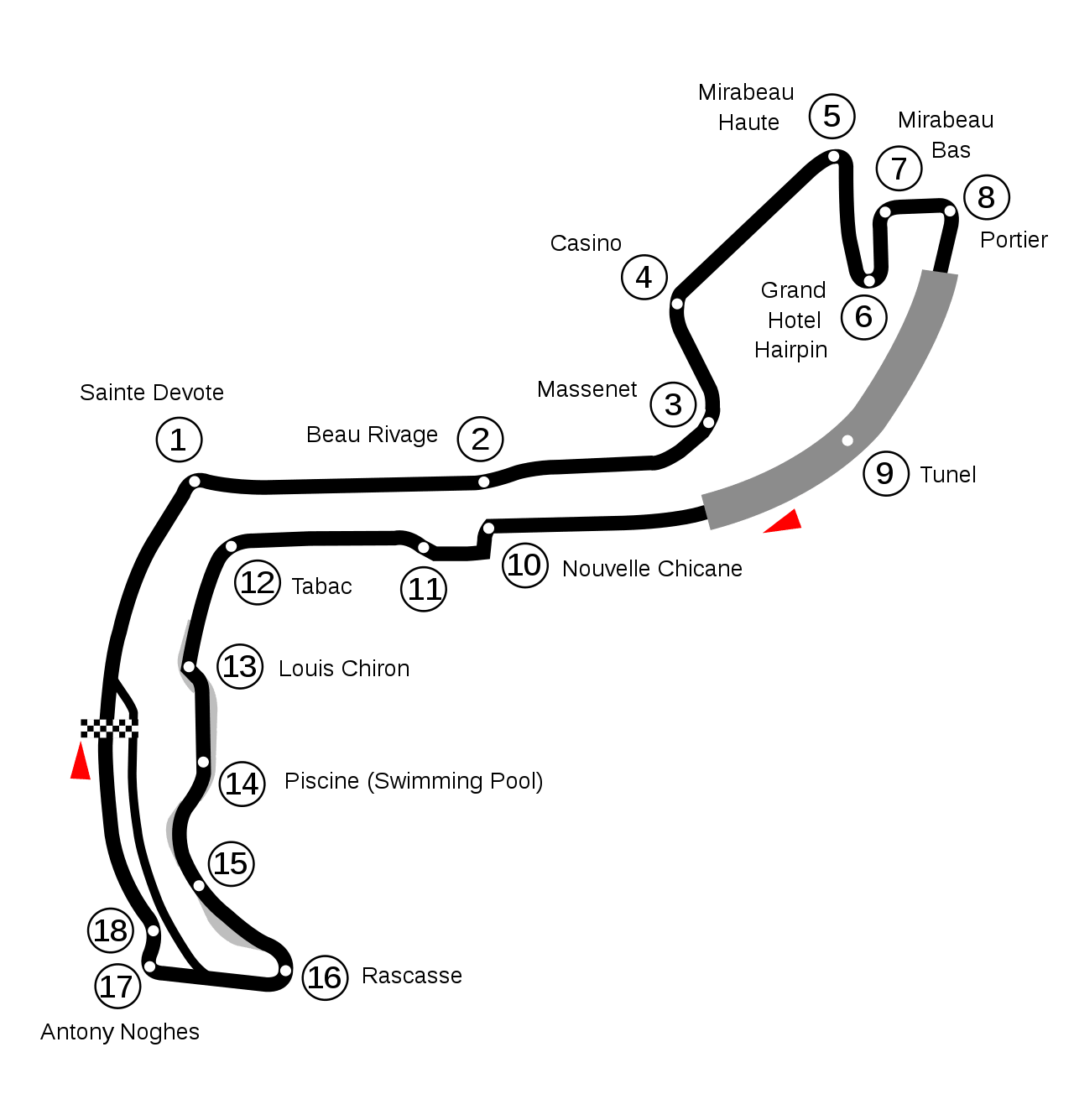 Creado en 1929, el circuito, que utiliza las calles del Principado durante un fin de semana, siempre ha conservado su trazado original y sólo ha sufrido algunas modificaciones menores desde que se celebró allí el primer Gran Premio en 1950. Entre ellas, la aparición de los boxes, la modificación de algunas curvas (Sainte Dévote, la Rascasse y Antony Noghès) y la construcción, en 1973, del túnel que hoy es casi tan famoso como el propio Gran Premio.