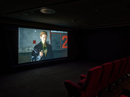 Tilda Swinton en una proyección de ‘La voz humana’ (2020), de Pedro Almodóvar, durante la exposición ‘Tilda Swinton. Ongoing’, en el Eye Museum de Ámsterdam.HANSWILSCHUT