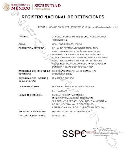 Más informaciónRegistro de la detención de Angie Miller.Gobierno de México