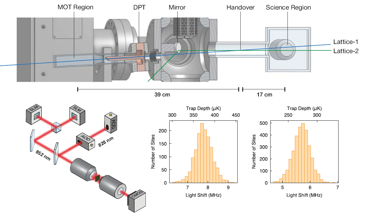 La nueva plataforma de computación cuántica con iones atrapados es fascinante. Los cúbits se implementan de forma estándar con iones de rubidio-87 usando sus estados 5S1/2. En el reservorio los Rb-87 están en un estado «protegido» entre 5P3/2 ↔ 4D5/2, pasando a un estado 5P3/2 ↔ 5S1/2 en la zona de preparación y luego se inyectan con un estado inicial como cúbit en la zona de almacenamiento. Entre el reservorio en la cinta transportadora y la zona de preparación la distancia físíca es de 220 μm, y entre esta y la zona de almacenamiento de 210 μm. Para verificar la coherencia de los cúbits se ha usado una aplicación repetida de la operación cuántica XYM-N (llamada protocolo de desacoplamiento dinámico), que consiste en repetir N veces (N = 16 o 64) una secuencia de M pulsos π (M = 4, 8 o 16) que aplican de forma secuencial y alternada una puerta lógica de Pauli tipo X (rotación de 180 grados, o π radianes, en el eje X de la esfera de Bloch del cúbit) y de tipo Y (rotación de 180 grados en el eje Y de la esfera de Bloch). Se ha repetido de forma continua, cada 80 ms, la aplicación de un pulto π/2, una operación cuántica XY16-64 y otro pulso π/2.