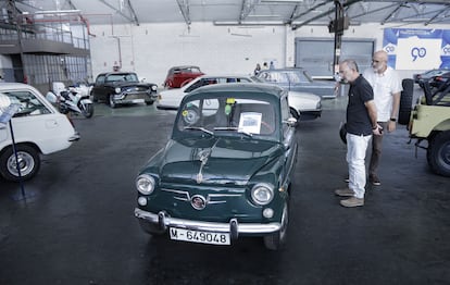 Dos hombres contemplaban el 4 de septiembre un Seat 600 en la exposición del Parque Móvil del Estado.Candela Ordóñez