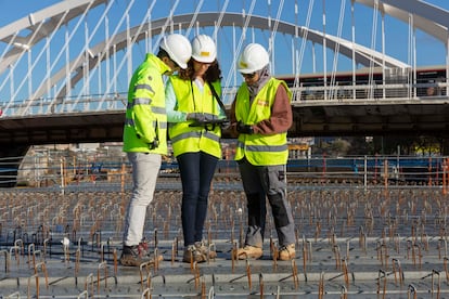 Imagen de archivo de trabajadores de Ferrovial Construcción en la obra de los accesos a la estación barcelonesa de La Sagrera.