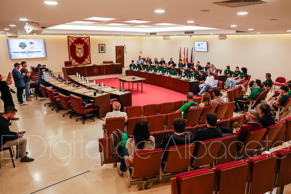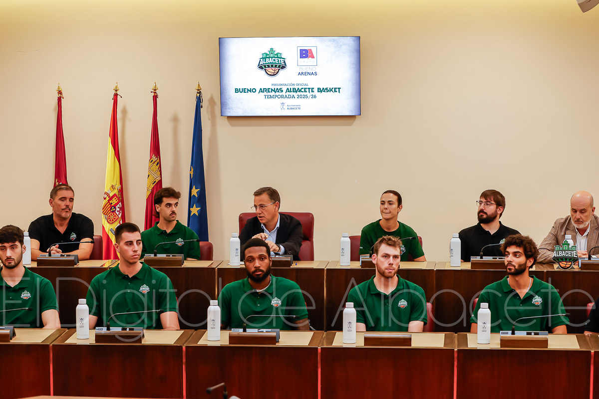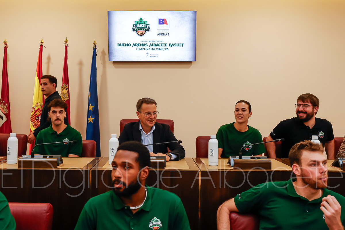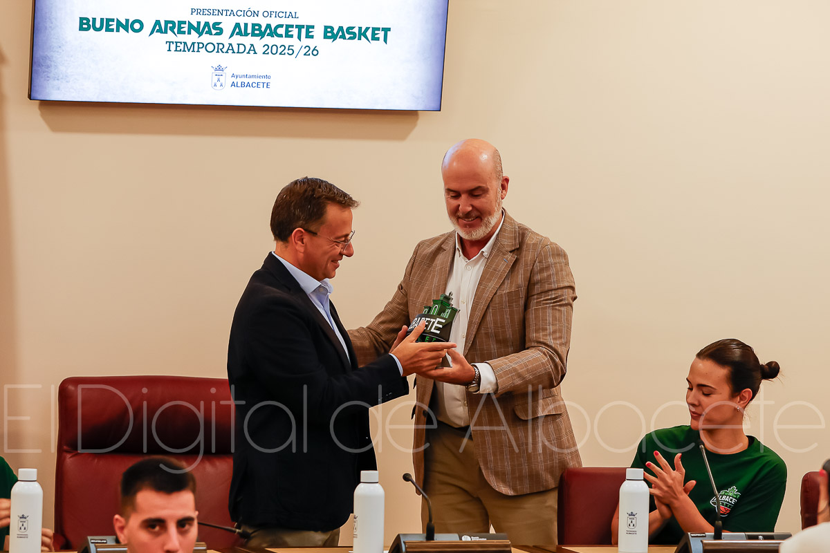En la tarde de este lunes, el Bueno Arenas Albacete Basket ha vivido su puesta de largo en el Ayuntamiento de la ciudad manchega, donde se ha realizado la presentación oficial del equipo albaceteño de la temporada 25/26.