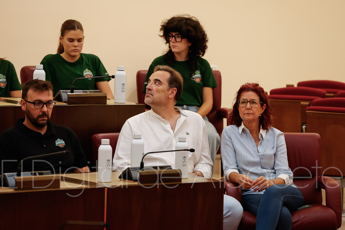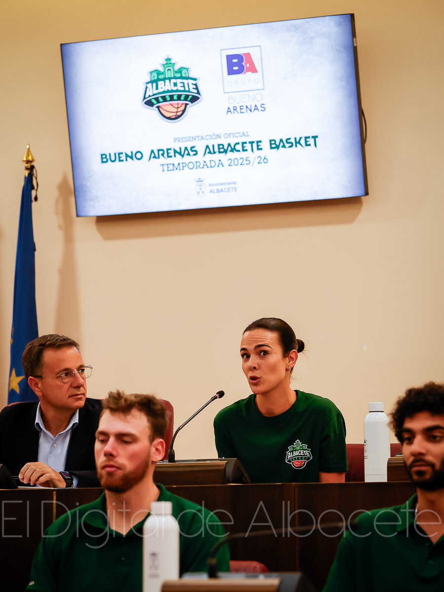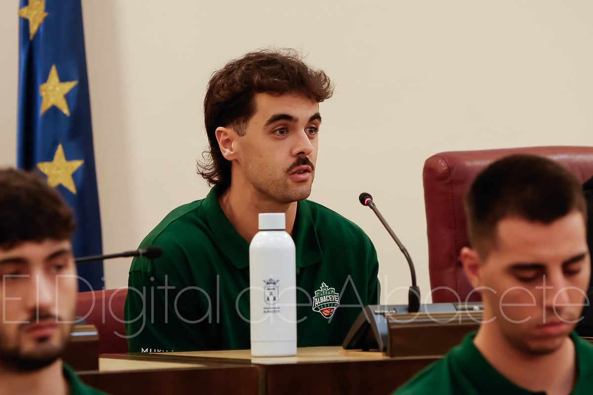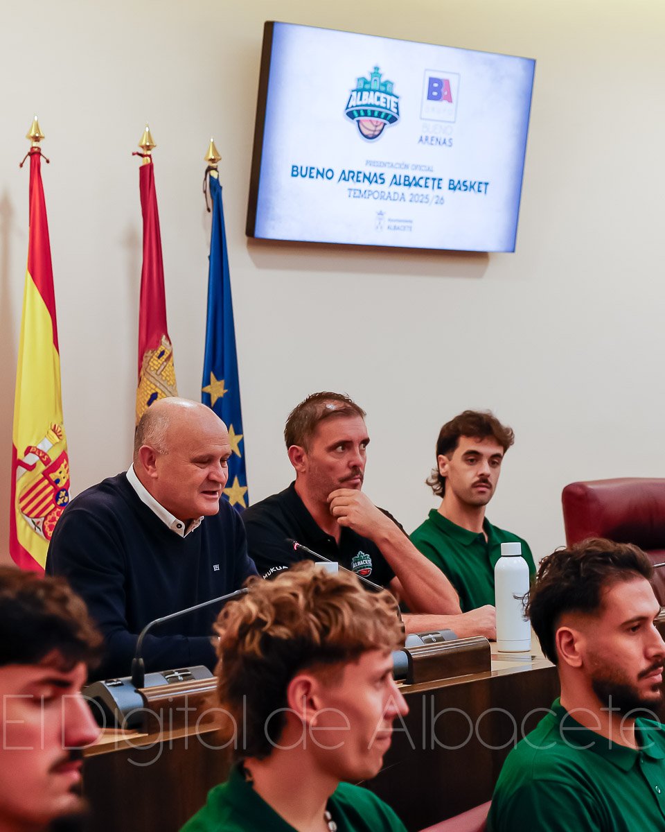 Estas palabras las pronunció Serrano durante la presentación oficial del Bueno Arenas Albacete Basket para la temporada 2025/2026, un acto celebrado en el salón de Plenos municipal. Allí estuvo acompañado por el presidente de la entidad, Rafael Ortega, el técnico del equipo, David Varela, el concejal de Deportes, Francisco Villaescusa, además de otros representantes de la Corporación.