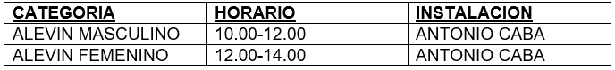 HORAS Y SEDES DE ENTRENAMIENTO DIA 4 DE OCTUBRE
