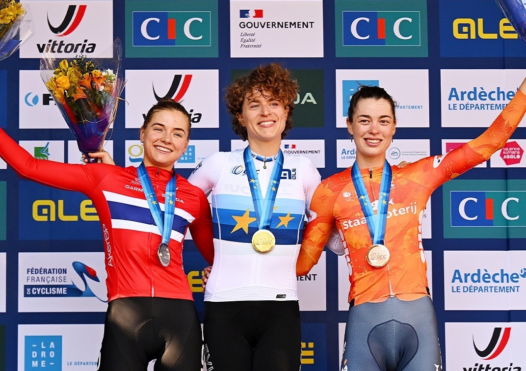 Podio élite femenino del Europeo de contrarreloj © UEC