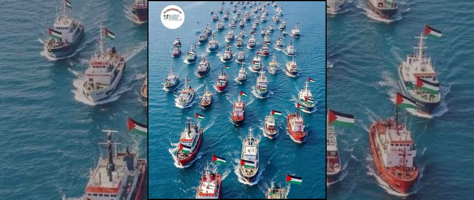 ❌No, esta imagen que muestra supuestamente barcos de la Global Sumud Flotilla no es real: tiene indicios de haber sido generada con IA