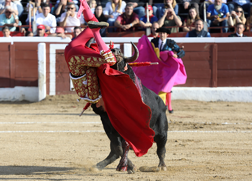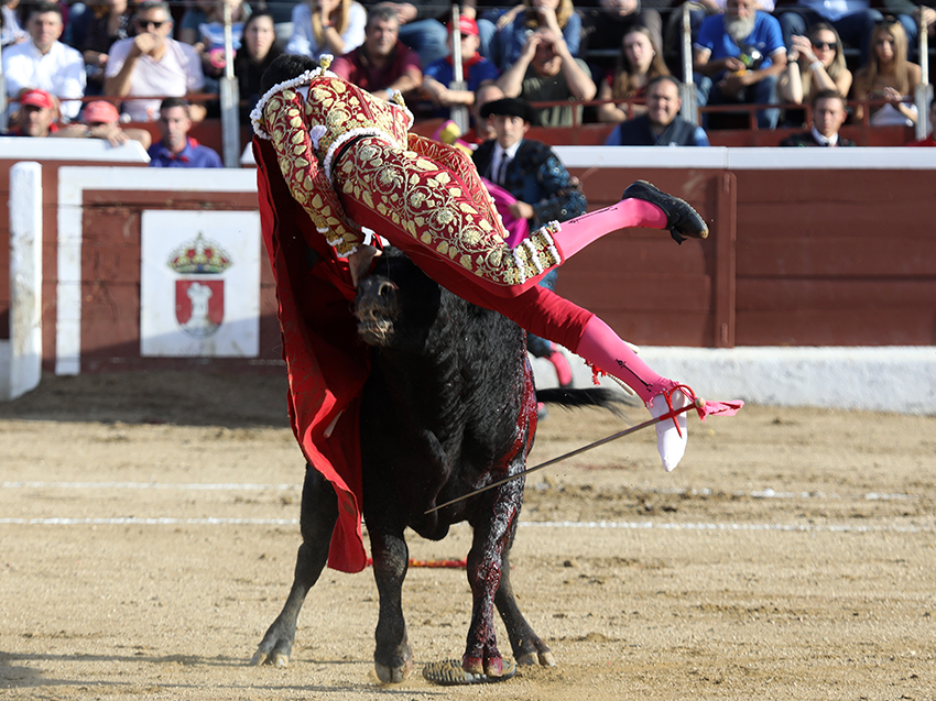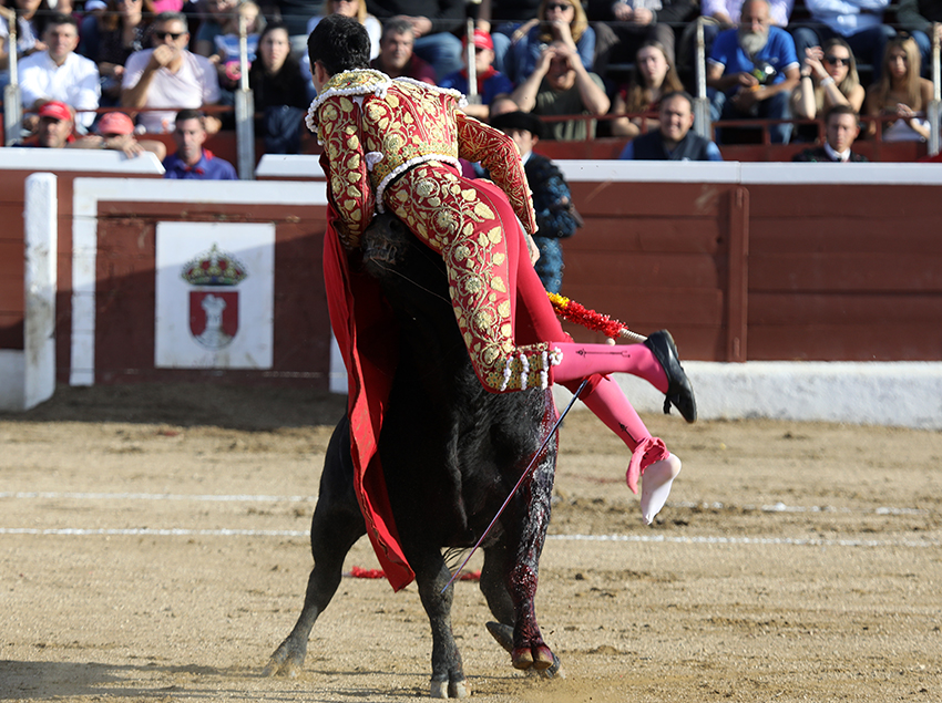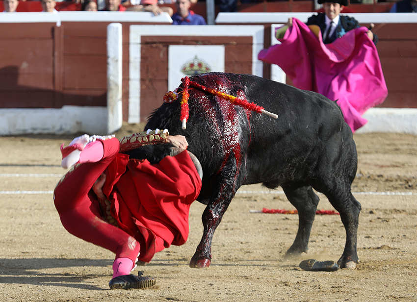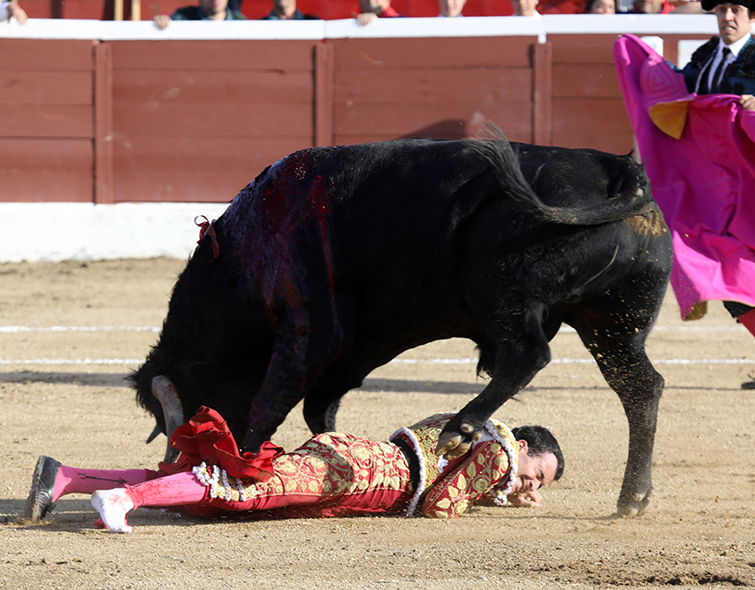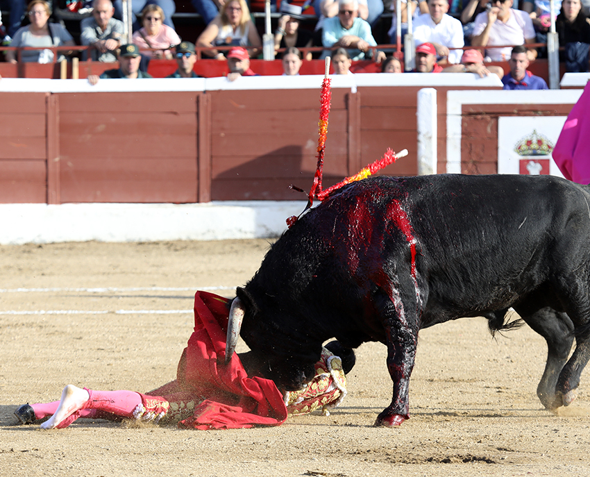Tenía una muy probable fractura de en el pie izquierdo creo que era al pie izquierdo de segundo y tercer metatarsiano luego tenía una cornada en la región glutea derecha con un trayecto ascendente de unos 17 cm que no penetraba en las masa muscular del glúteo. Se lo ha operado y ahora se le envía ya al hospital para sobre todo para ver la la serie de estudio radiologicos del pie para estudio de la posible fractura estado grave por las dos lesiones.