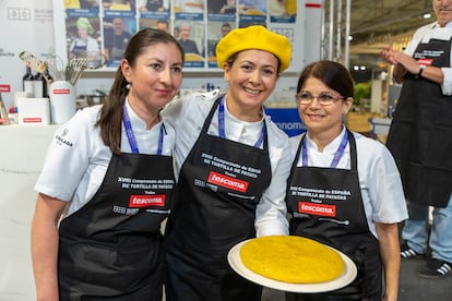 “Es la tercera vez que nos presentamos al concurso. Al principio pensábamos que no tendríamos posibilidades porque nuestra tortilla es diferente, al estilo de Betanzos, con mucho protagonismo del huevo, y eso a veces no gusta”, afirma el cocinero Alejandro Oliveira, un maestro en el arte de voltear —con un ligero movimiento al aire de la patata y el huevo— y mimar las tortillas que prepara, más de 60 diarias. Ahora, con el triunfo, sabe que quizá tenga que preparar alguna más.