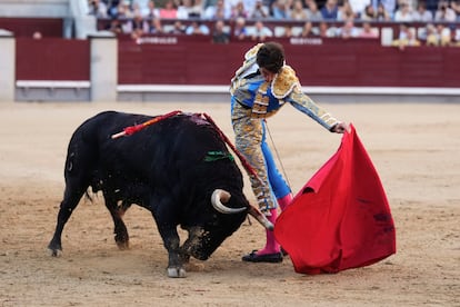 Pablo Aguado, durante la corrida de la Feria de Otoño celebrada el sábado 4 de octubre en la plaza de toros de Las Ventas, en Madrid. Borja Sánchez-Trillo (EFE)