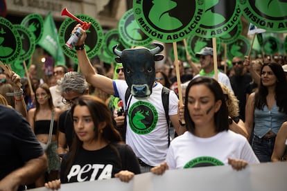 Manifestación antitaurina de PACMA Misión Abolición 2025, en 20 de septiembre de 2025, en Madrid.Alejandro Martínez Vélez (Europa Press)