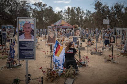 Bajan y observan las fotos de los muertos. Son brasileños, estadounidenses, venezolanos, o alemanes, como Henrike Seemann. Ha venido desde Hannover —donde organiza contramanifestaciones a las marchas en solidaridad con Gaza― y cuenta que imprimió y colgó en su casa las fotos de las víctimas del ataque de Hamás para tenerlas siempre presentes. “La mejor forma de honrar su memoria es no olvidar nunca sus nombres. Contar sus historias, sus hobbies, lo que les gustaba hacer…”, subraya.