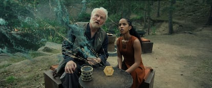 Jared Harris como Hari Seldon y Lou Llobell como Gaal Doornick en la tercera temporada de ‘Fundación’.