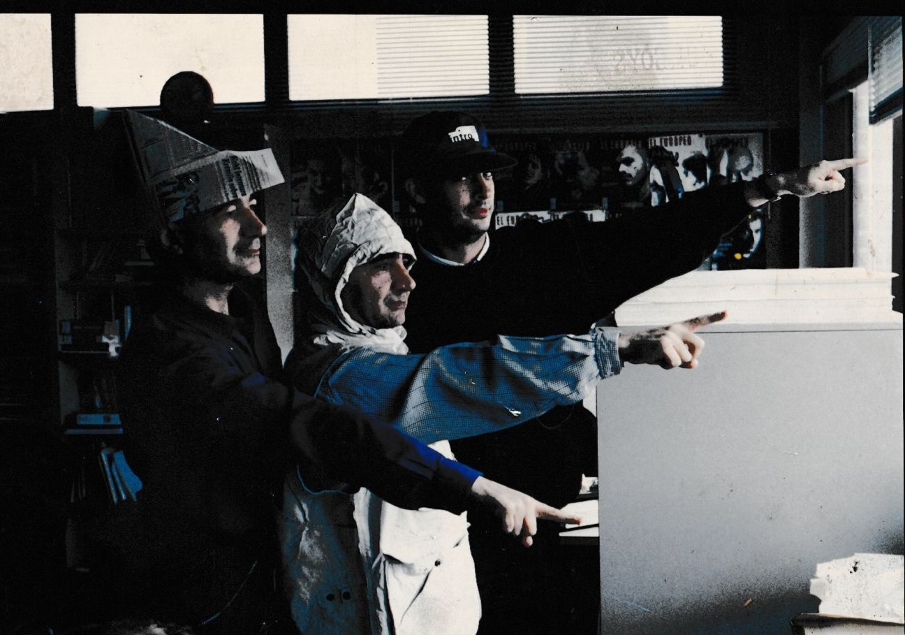Enrique Murillo, Jordi Socias y Fernando Rimblas en la redacción de El Europeo (señalando al futuro…). Imagen cortesía del autor.