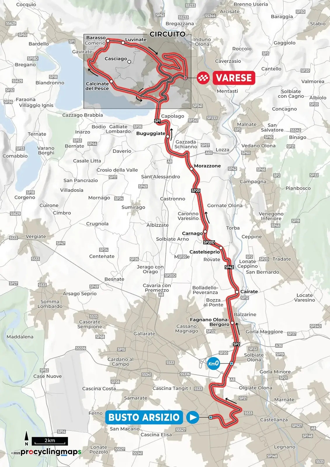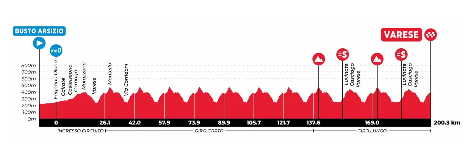 El presidente de la organización, Renzo Oldani, adelantó a La Prealpina que la llegada volverá a ser en Varese, con el mismo circuito que en 2024 no pudo estrenarse debido a la suspensión de la prueba a causa del fuerte temporal. «En el final volveremos a proponer el trazado que el año pasado, por las conocidas razones, no se pudo disputar», explicó Oldani. Ese circuito incluye la subida de los Ronchi, mientras que en las dos últimas vueltas los corredores afrontarán el ‘muro’ de Cinque Piante en Oltrona al Lago di Gavirate, la rampa de via Matteotti en Barasso y, finalmente, el ‘Sasso’, un tramo decisivo en tantas ediciones de la Tre Valli, pasando por Luvinate y Casciago antes de la meta.