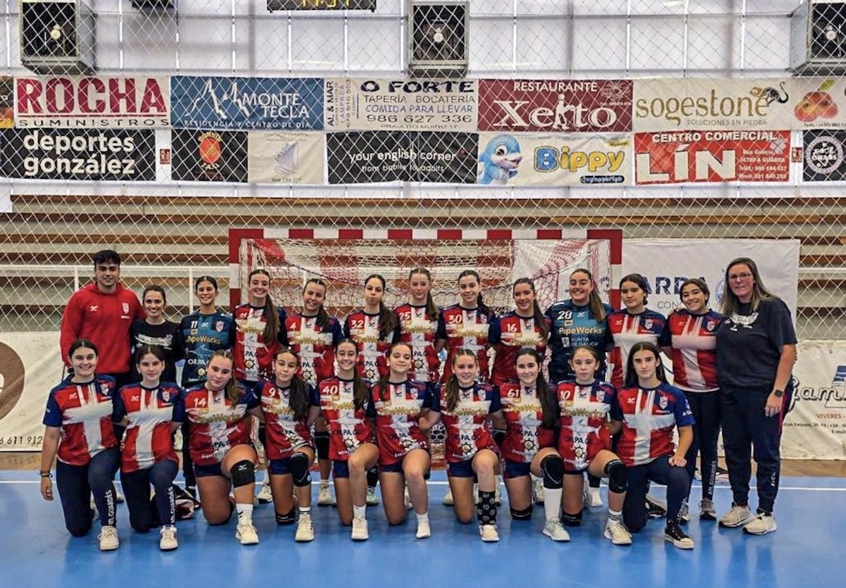 Por último, el turno de las cadetes llegó el 26 y 27 de septiembre, también en el pabellón guardés. Las de María Doiro lograron un pleno de tres victorias ante sus rivales de grupo, Martínez & De Castro BM Tui, GLC Abogados Lavadores Vigo y As Choqueiras, lo que las catapultó también a la primera posición y, a su vez, a la Liga Oro de la categoría.