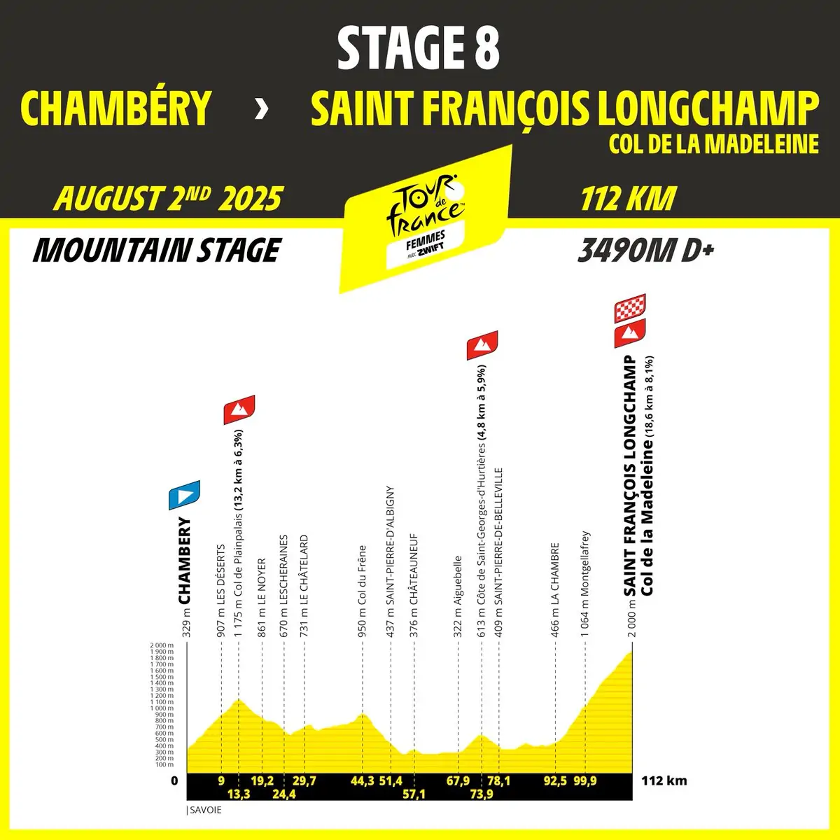 8ª: Sábado 3 julio. Chambéry (14:00)-Saint François Longchamp (Col de la Madeleine) (17:30), 112 km
