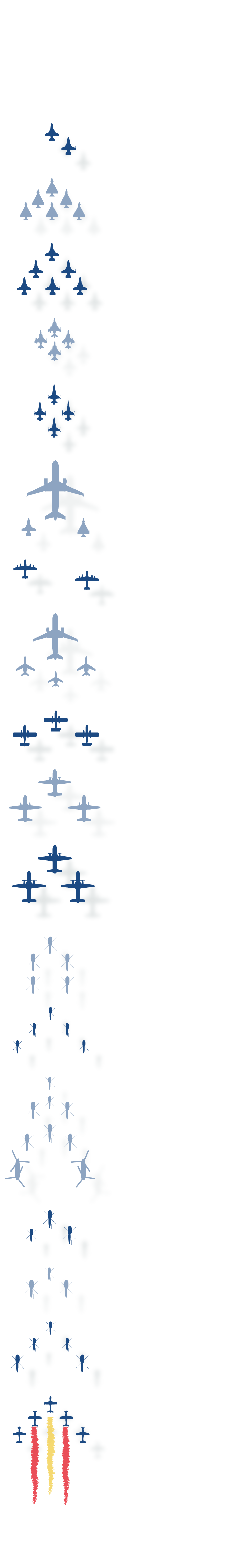 Coincidiendo con el final del toque de oración de este homenaje a los caídos, la Formación Mirlo sobrevolarán la escena pintando el cielo de Madrid con los colores de la bandera española. Será este el momento en el que arranque el desfile aéreo, seguido del terrestre.