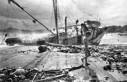 ´Spunik´, fotografía del barco pesquero encallado en Playa de Hornos, Guerrero en 1993.ELSA MEDINA
