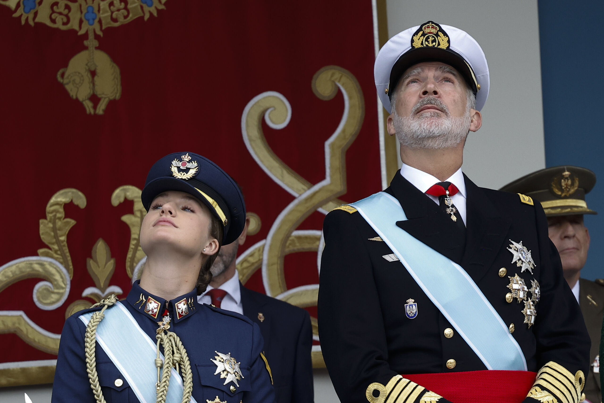 Otra de las imágenes que han llamado la atención ha sido la complicidad entre el Rey y la Princesa de Asturias, que han charlado y comentado momentos del desfile como cuando, por ejemplo, Felipe VI le ha preguntado durante el desfile aéreo «¿Has visto algo?», a lo que la Princesa ha respondido «no» mientras sonreía a su padre.