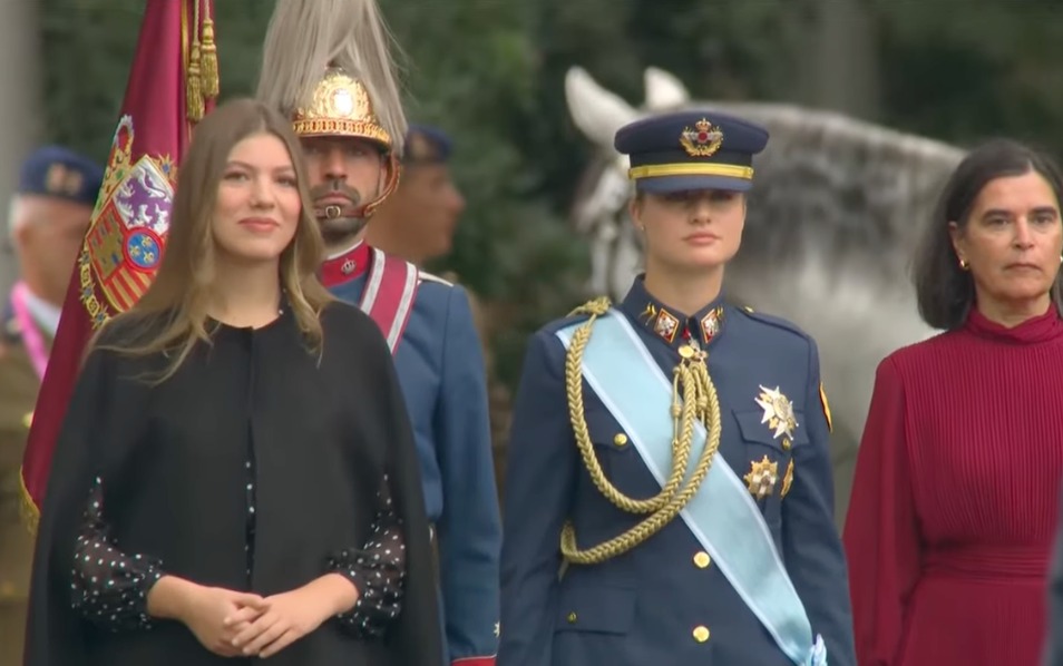 Hacía cuatro años que los Reyes, la Princesa Leonor y la Infanta Sofía no coincidían el 12 de octubre, debido a la formación académica en Gales de ambas. En este regreso, la Infanta Sofía se ha mostrado espontánea, incluso a su llegada, no ha podido evitar reírse de forma nerviosa mientras miraba a ambos lados, por los abucheos a Pedro Sánchez.