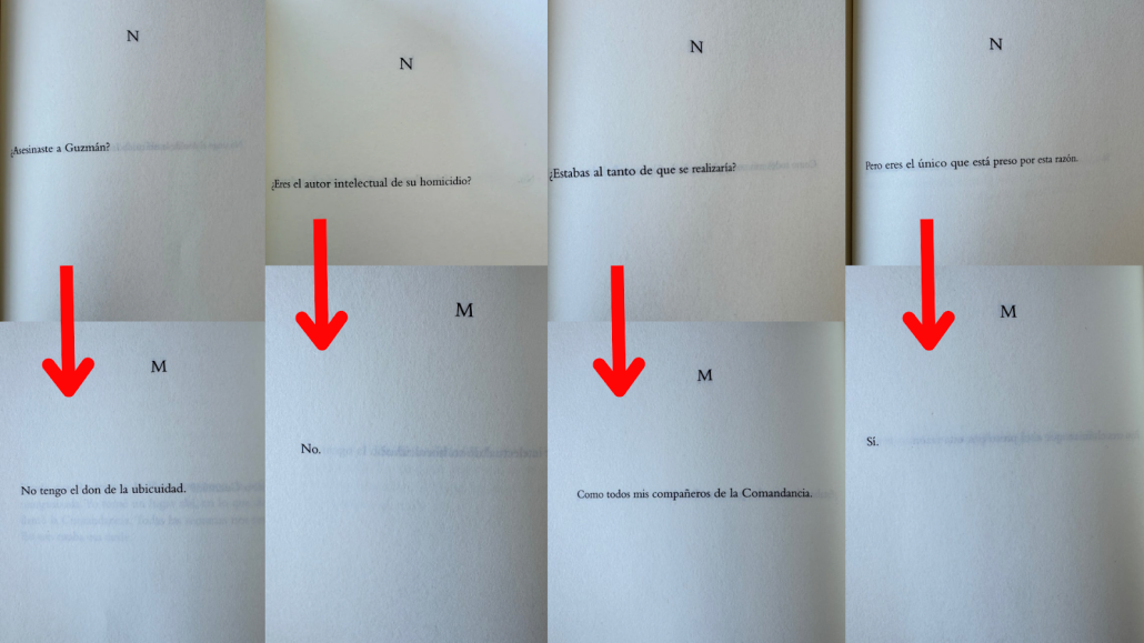 Se supone que Nona Fernández trabajaría en una serie donde él sería la principal fuente de información y, para ello, contaba con un permiso para visitarlo en medio de su estricto régimen de aislamiento. La serie, que quizás habría sido protagonizada por Pedro Pascal o Santiago Cabrera, nunca se realizó. De esa experiencia, Fernández heredó la posibilidad de seguir visitando a Hernández Norambuena. El libro se distribuye en once encuentros y comienza con una interesantísima cita de La teoría de la bolsa de la ficción de Ursula K. Le Guin: “Por eso me gustan las novelas: en lugar de héroes, contienen personas”. Una cita que te hace todo el sentido cuando terminas la lectura.