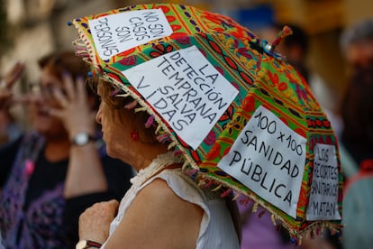 Concentración en Sevilla el pasado miércoles por los fallos en el sistema de cribado de cáncer de mama en Andalucía.PACO PUENTES