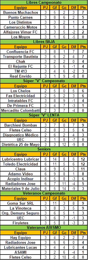 Luego de esta pequeña introducción que probablemente no le importó a nadie, pasamos a desandar cada uno de los grupos comenzando como de costumbre con los Libres Campeonato donde Buenos Muchachos se mantiene en lo más alto.