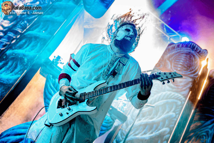 Precisamente, disfrazados con atuendos de doctores de hospital, todos vestidos de riguroso blanco, -instrumentos incluidos-, y luciendo diferentes máscaras, fue como irrumpieron en escena los chicos de BLOOD WHITE. He de admitirlo, no tenía apenas referencias del combo alemán, poco más allá de haber escuchado un par de temas. Y lo cierto es que, como a muchos de los presentes, me impactó muy positivamente la garra y el empuje que el quinteto exhibió en temas como la inicial “Don’ t Blame Me” y “Unholy Water”, combinando velocidad, ferocidad, y algunos desarrollos más melódicos. Tras tan solo un par de temas, y viendo su forma de atacar su material y de moverse por el escenario, quedaba claro que una de sus principales influencias eran los enmascarados de Iowa. Así que a lo largo del show fueron una constante los riffs pesados, cortantes e hirientes que protagonizaron trallazos como “Memories”.