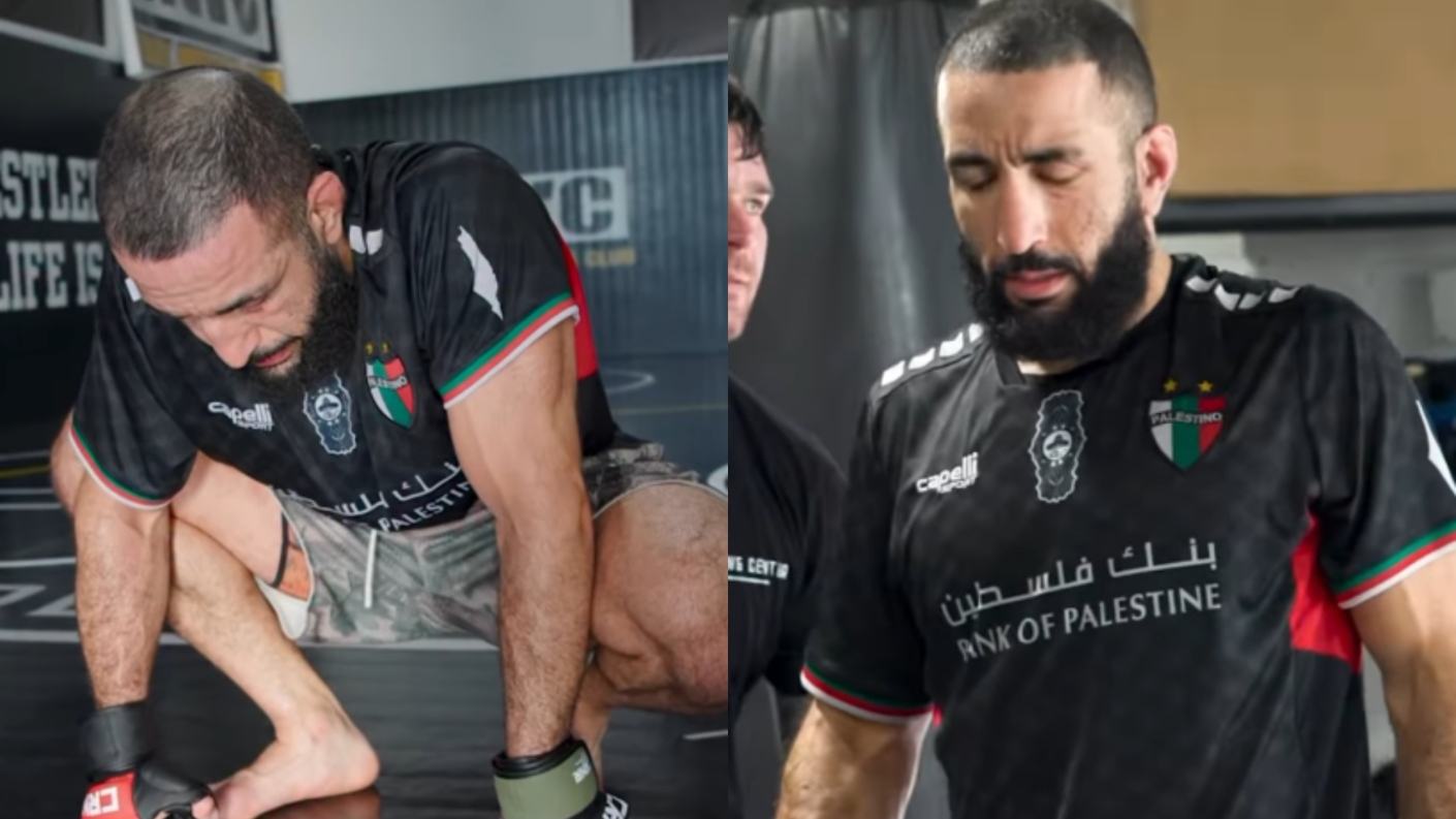 Belal Muhammad, estadounidense de padres palestinos, muestra constantemente en redes sociales su apoyo a la causa palestina y ahora compartió un video entrenando para la esperada pelea con Garry con una camiseta de Palestino. ¿Se la habrá llevado «La Jaula»?