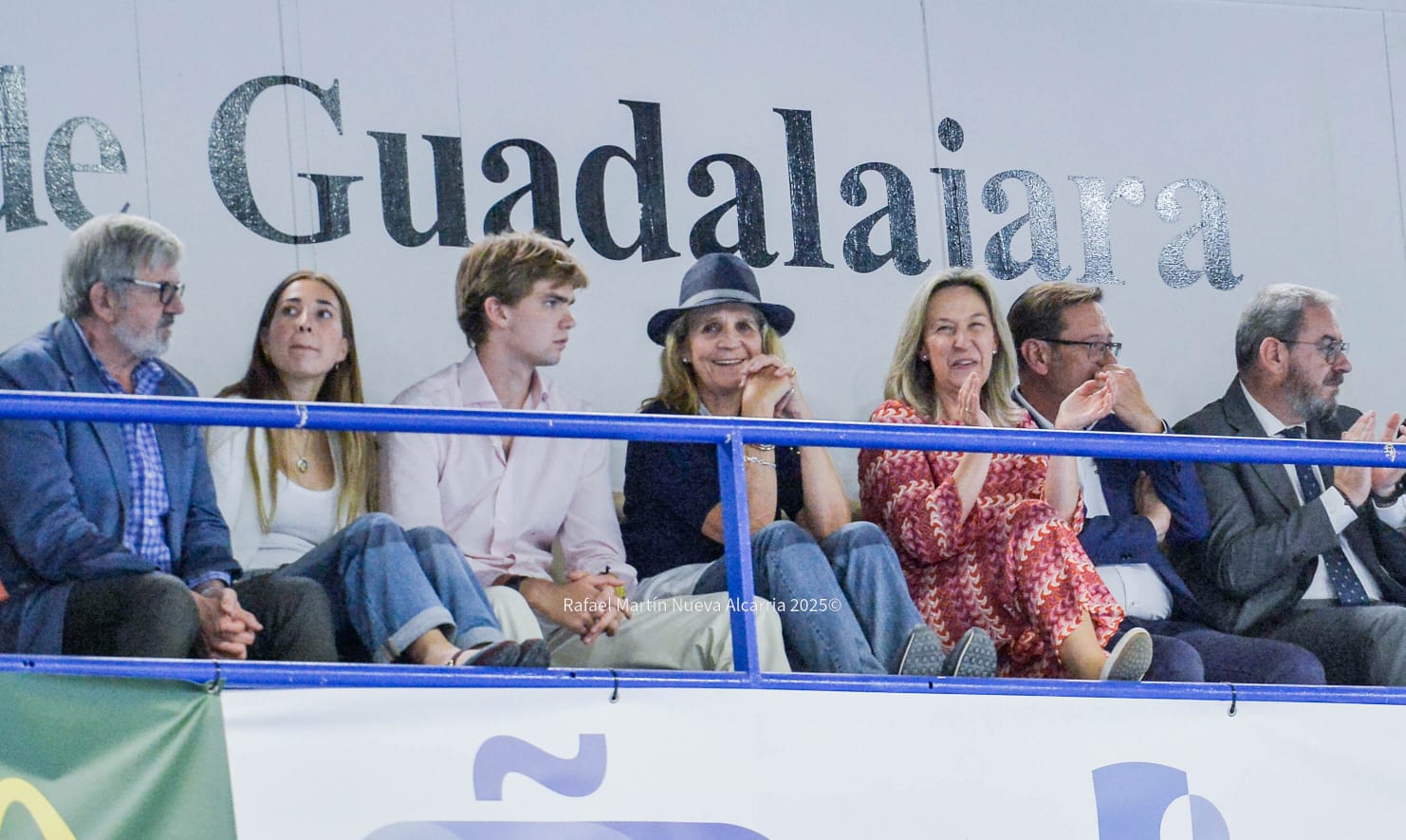 Doña Elena siguió el partido desde el palco del polideportivo David Santamaría, acompañada por su sobrino Miguel Urdangarín, hijo de la infanta Cristina e Iñaki Urdangarín y de la alcaldesa de Guadalajara, Ana Guarinos, varios concejales del equipo de Gobierno y el viceconsejero de Administración Local, Eusebio Robles.