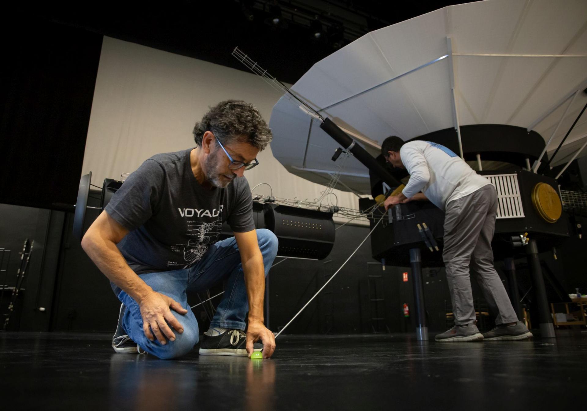 Todo surgió hace cinco años. José Salvador y Antonio estaban sentados el uno frente al otro en una cafetería de Armilla. Estaban preparando una charla sobre la Voyager y, al valorar cómo iban a hacerla, ambos se miraron a los ojos y coincidieron en que la mejor manera era haciendo una copia exacta, al mismo tamaño, de las sondas. Una empresa que les ha llevado cinco años de faena. «Cada uno tiene su trabajo, yo soy informático industrial y Antonio técnico en electrónica, pero empezamos a currar en nuestros ratos libres, sin prisa pero sin pausa, y por fin lo hemos conseguido», dice José Salvador, orgulloso, delante de su Voyager, que en los próximos dos meses se podrá ver en el Teatro de Armilla y que, posteriormente, se exhibirá con fines divulgativos en otras instituciones de dentro y de fuera de Granada. No pesa tanto. Tan solo 150 kilogramos frente a los 735 de las originales.